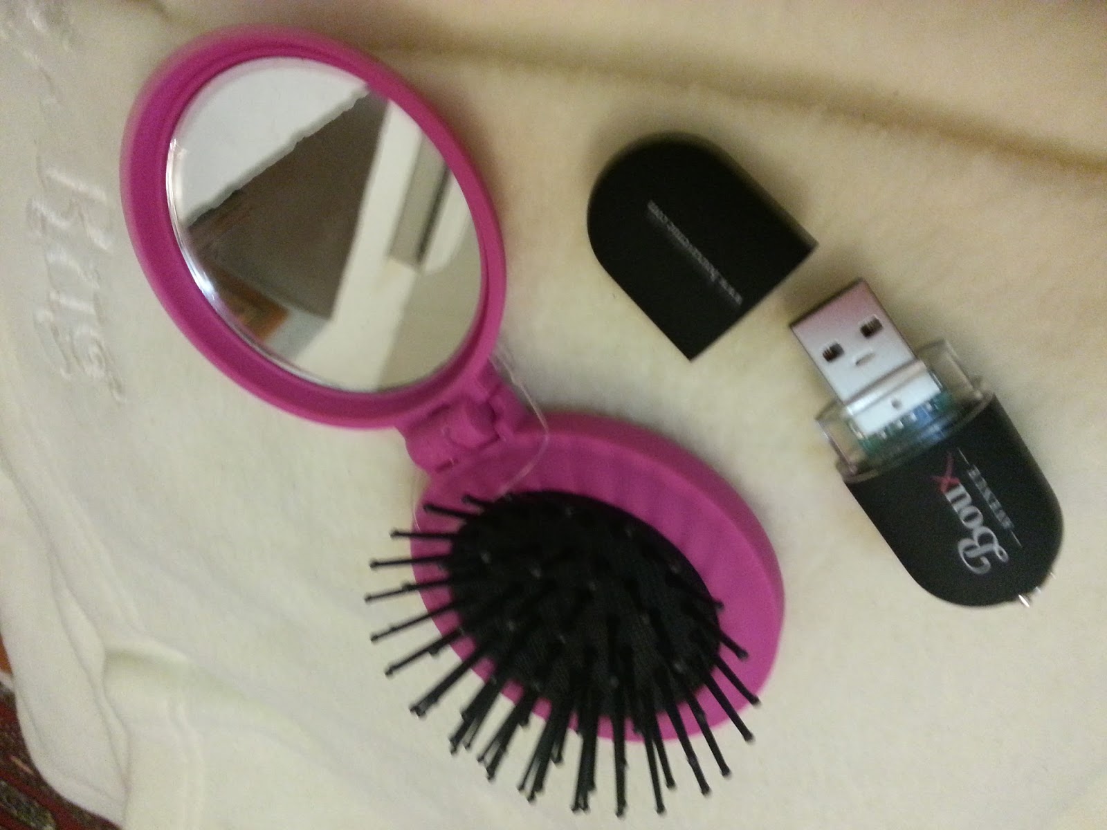 I was also given a great goody bag that had these little juicy gifts inside…a perfect handy compact foldable brush and a little usb key.
