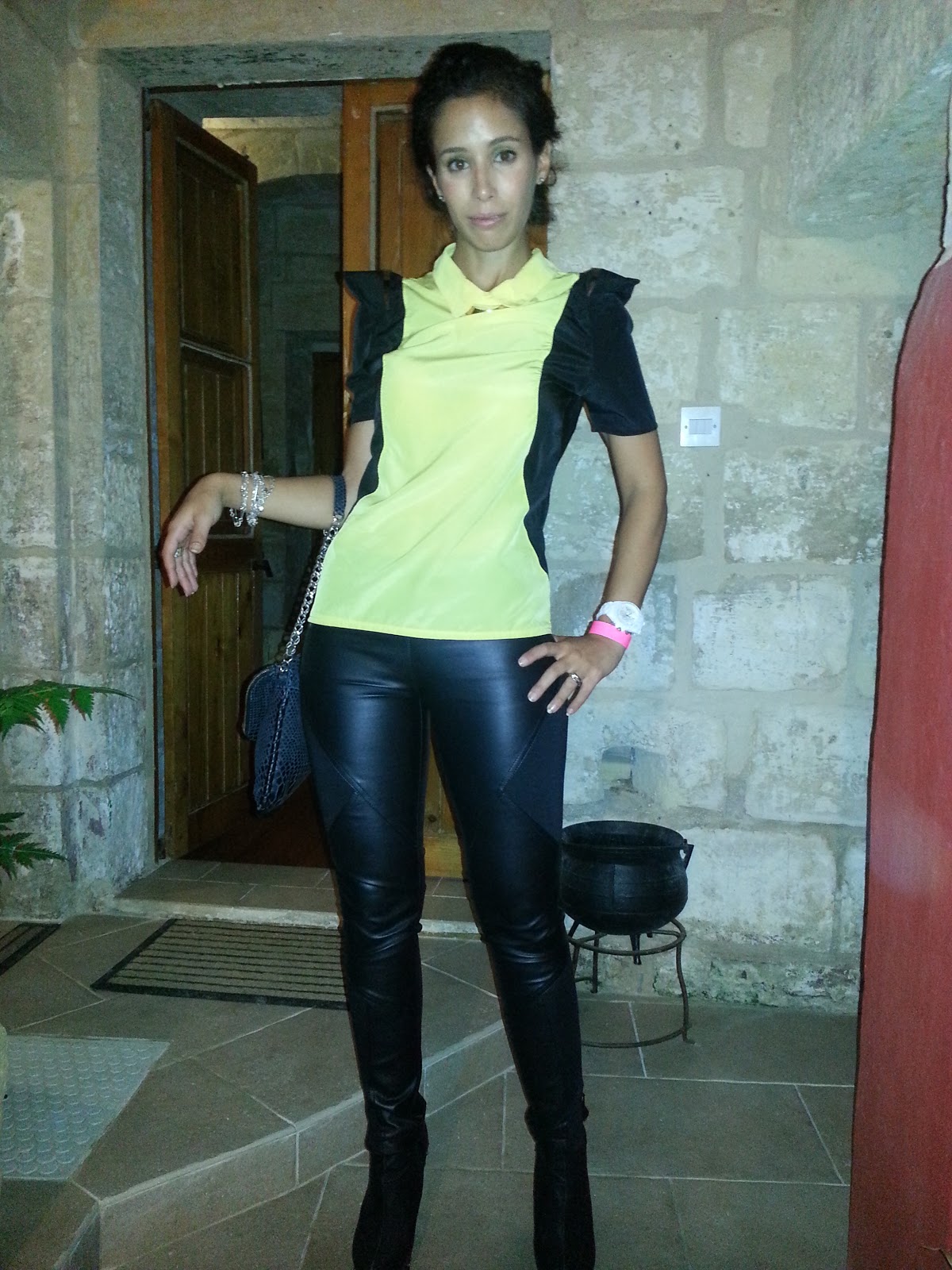 I love big structured shoulders, they balance out my hips beautifully 🙂 I teamed it with a tight pair of leather trousers and a black leather bag I picked up in Istanbul.