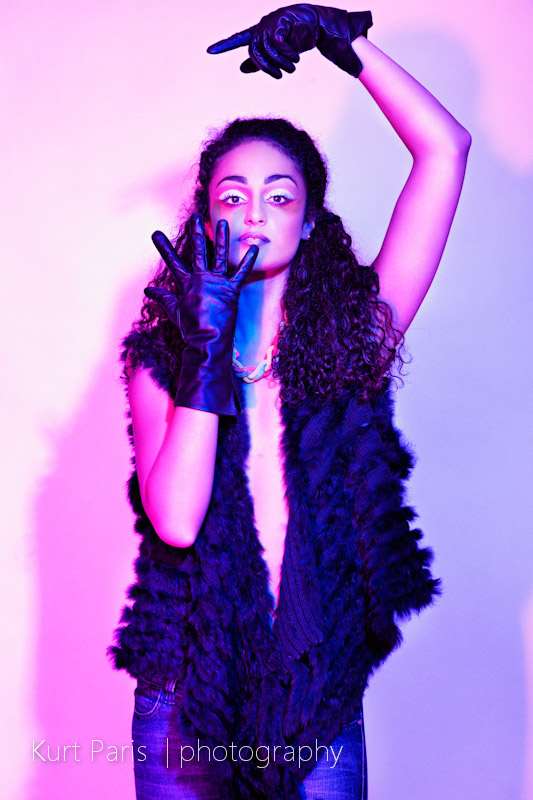 This photoshoot was planned before Gaby Curmi went to study abroad for a year on an Erasmus exchange program. The photographer (Kurt Paris) wanted to use coloured lights and I wanted to use leather and fur as a styling theme – the result can be seen below…makeup was by Krista Paris and hair by Chris Galea from Michael and Guy, photography Kurt Paris, model gaby@supernovamodel.com, styling by me :).