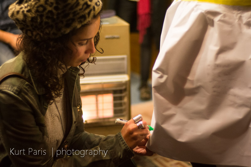 we took turns signing the paper dress (me below – for a full description of what I wore to the event go here)