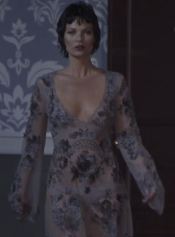 And for the final piece – Kate Moss who hasn’t been seen on a catwalk sine 2011, sauntered down the runway, wearing this sheer dress with floral appliqué her appearance was met with thunderous applause.