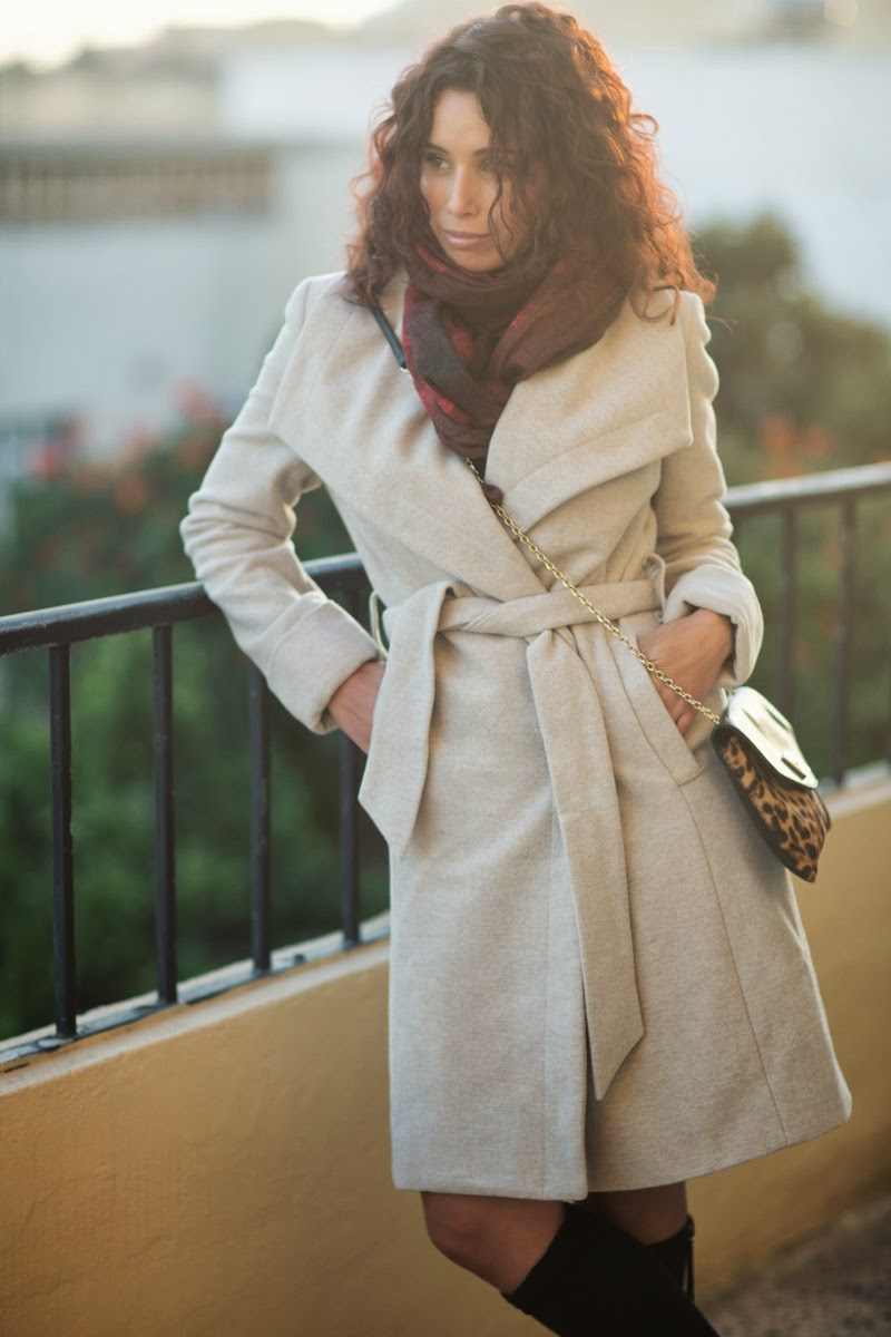 This styling idea of wearing a coat over a shorter dress or skirt is a great idea for petite women. The style works especially well with coats like this that have a belt or tie-around of some sort. If you’re on the shorter side like me, that little bit of flesh showing (in my case my knees) can help to make you look slightly taller. A lot of people tend to shy away from earth and light colours during Winter but I think they look even more beautiful especially if your skin tone is on the darker side.