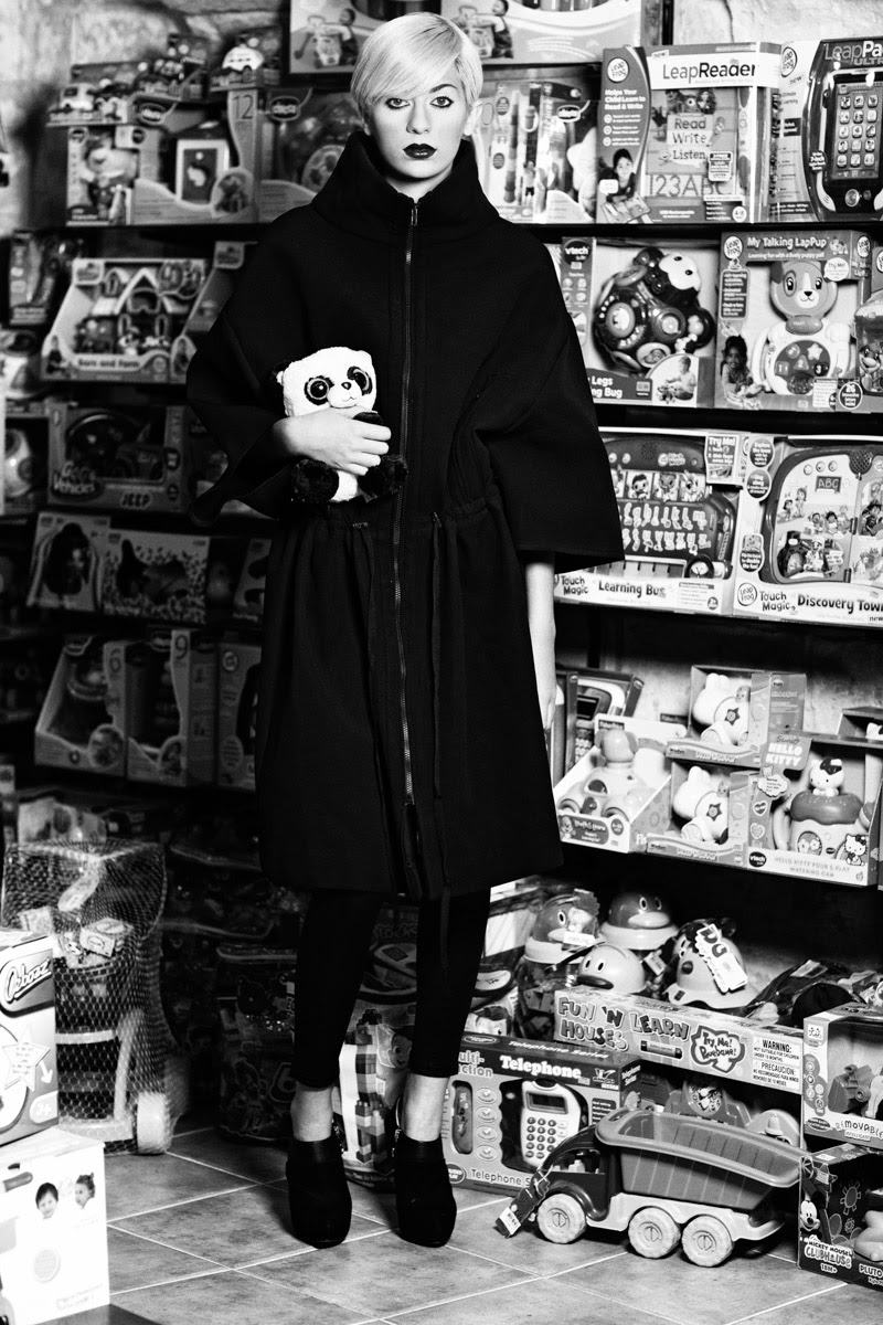 The concept is a dark and brooding one, with an element of surrealism, a dark elf surrounded by children’s toys just before Christmas. Kurt had the brilliant idea of shooting this editorial in monochrome which fitted the theme perfectly.